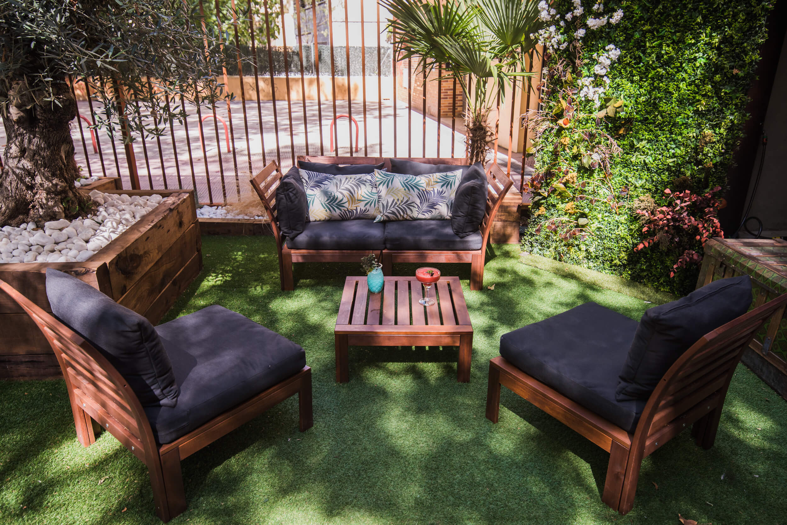 Una de las partes esenciales de LEVEL, y que lo hacen único. Este espacio fue creado para cambiar el concepto de “peluquería al uso”, aportar frescura, y un lugar donde poder descansar, esperar, o disfrutar durante el servicio, de aire fresco, cambiando así los espacios interiores exclusivamente, por un ambiente “chill out – vegetal” al aire libre. Con ello, le damos la vuelta al concepto de “peluquería”, y lo convertimos en una experiencia diferente, e incatalogablede, que se convierte en todo un lujo, más aún si puedes disfrutar de un cocktail o una shisha, antes o durante el servicio.
