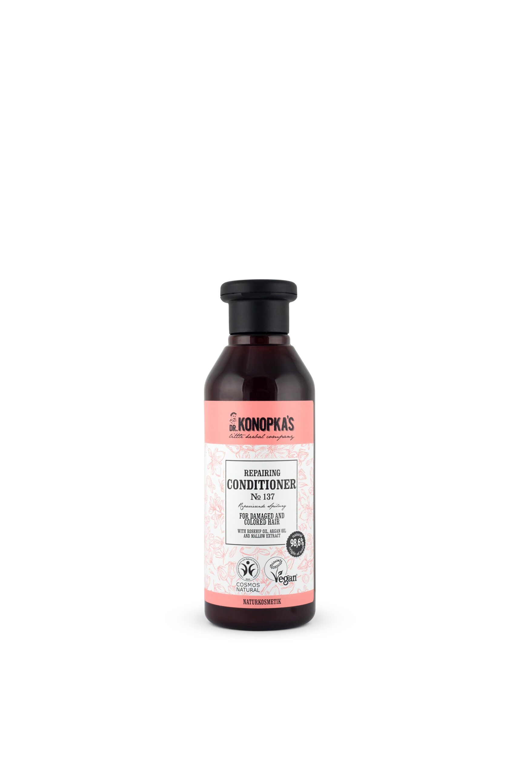 El aceite de argán, aceite de escaramujo y extracto de malva orgánicos reparan intensamente el cabello quebradizo, suavizan y desenredan, dejando el cabello fuerte y brillante.