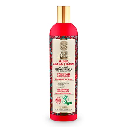 El bálsamo capilar profesional de arándano de Kamchatka, amaranto y arginina, basado en hidrolato de arándano de Kamchatka orgánico, repara la estructura del cabello teñido, le aporta brillo, protege el color y facilita el peinado.