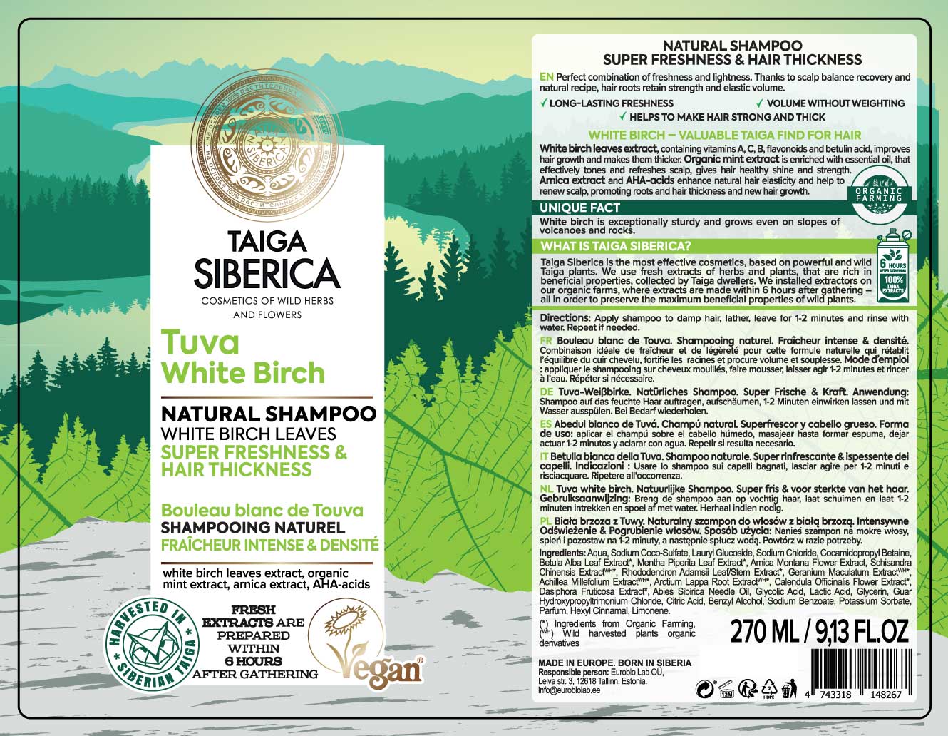 INCI: Aqua, Sodium Coco-Sulfate, Lauryl Glucoside, Sodium Chloride, Cocamidopropyl Betaine, Betula Alba Leaf Extract*, Mentha Piperita Leaf Extract*, Arnica Montana Flower Extract, Schisandra Chinensis Fruit ExtractWH*, Rhododendron Adamsii Leaf/Stem Extract*, Geranium Sibiricum ExtractWH*, Achillea Millefolium ExtractWH*, Arctium Lappa Root ExtractWH*, Calendula Officinalis Flower Extract*, Dasiphora Fruticosa Extract*, Abies Sibirica Oil, Glycolic Acid, Lactic Acid, Glycerin, Guar Hydroxypropyltrimonium Chloride, Citric Acid, Benzyl Alcohol, Sodium Benzoate, Potassium Sorbate, Parfum, Limonene.