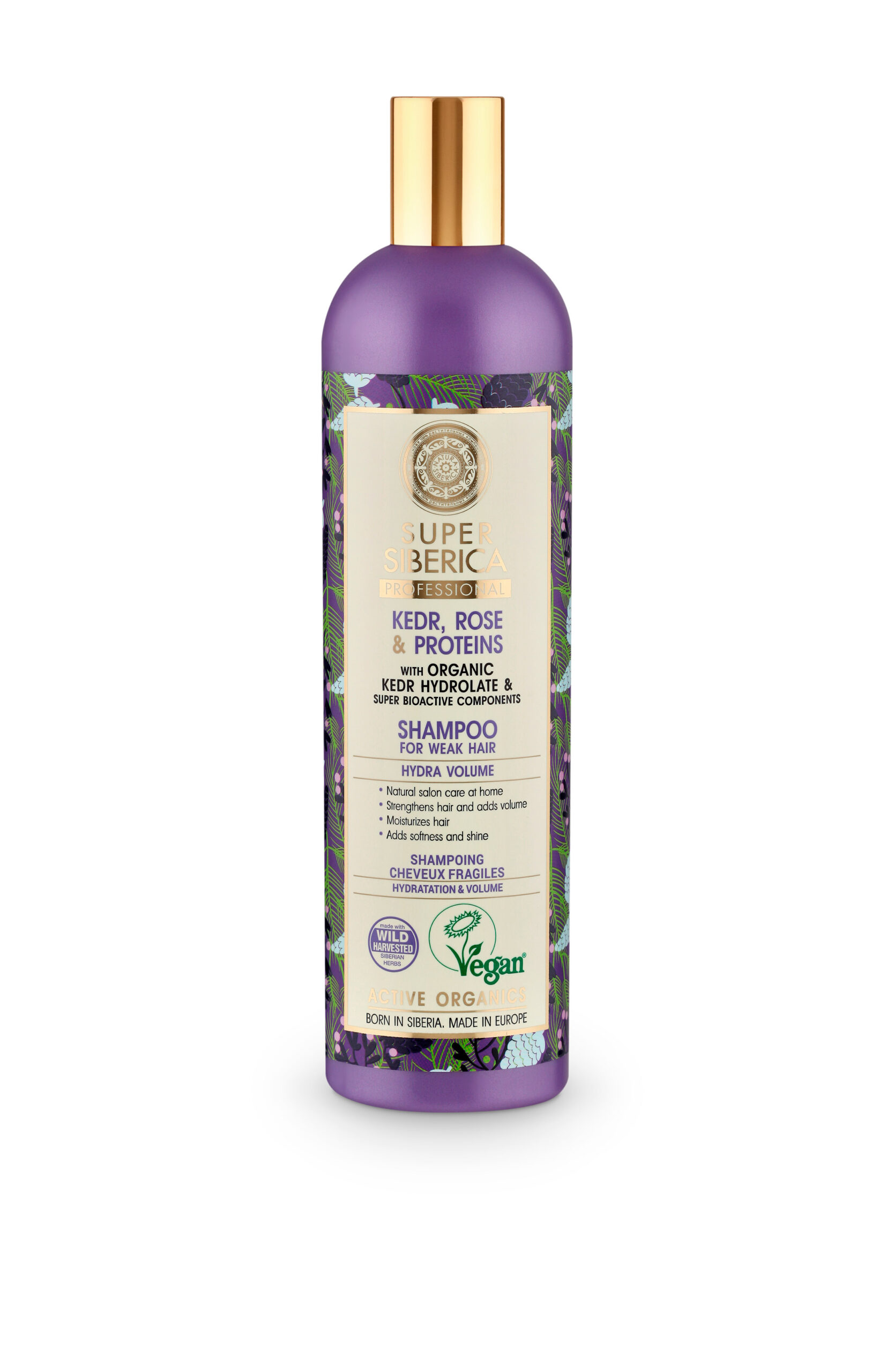El champú profesional PINO, ROSA Y PROTEÍNAS, basado en hidrolato de pino siberiano orgánico, limpia delicadamente e hidrata el cabello débil y le proporciona fuerza, energía, volumen desde las raíces y un brillo deslumbrante.