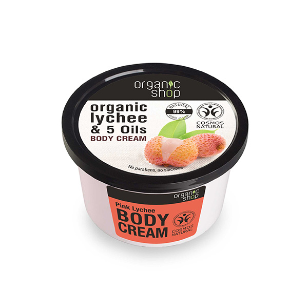 Esta crema ligera a base de extracto de lichi orgánico y cinco aceites (aceites orgánicos de aguacate, borraja, germen de trigo y mantecas orgánicas de cacao y karité) llena la piel de vitaminas, la nutre y hace que sea más suave y sedosa.