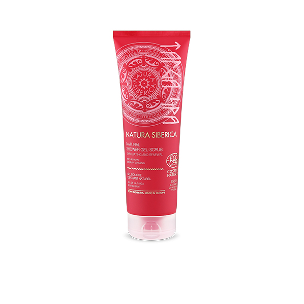 El gel de ducha exfoliante «Spa de la taiga», con partículas exfoliantes y extracto de serba silvestre y de ginseng siberiano, limpia delicadamente, exfolia y revitaliza la piel mientras aporta un agradable aroma. Proviene de: Granja orgánica de Sajalín