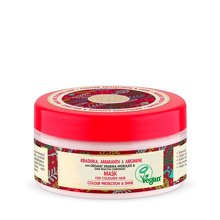 La mascarilla capilar profesional con arándano de kamchatka, amaranto y arginina para cabello teñido, basada en hidrolato de arándano de Kamchatka orgánico, repara la estructura del cabello teñido, le aporta un brillo deslumbrante y protege el color.