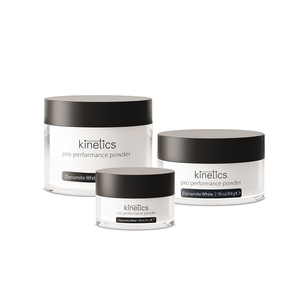 Satured, de color blanco. Estos colores verdaderamente distintivos dan a la uña alta definición cuando se combina con un monómero. Estos polímeros no se cristalizarán en climas cálidos, fríos, secos o húmedos. Polymer Dynamite White crea un aspecto nítido y de manicura francesa de calidad de competición. La mezcla más fina de partículas permite una aplicación autonivelante y suave que requiere poca o ninguna presentación.