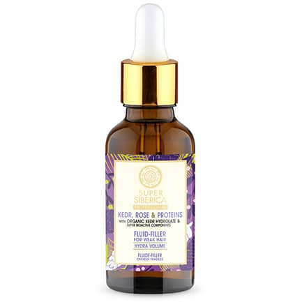 El rellenador fluido de pino, rosa y proteínas, basado en hidrolato de pino siberiano orgánico, ayuda a fortalecer eficazmente el cabello débil y lo deja fuerte y brillante. El fluido rellena y deja el cabello más grueso cubriéndolo de raíces a puntas a la vez que lo deja suave y sedoso. Además, le otorga esplendor y volumen.
