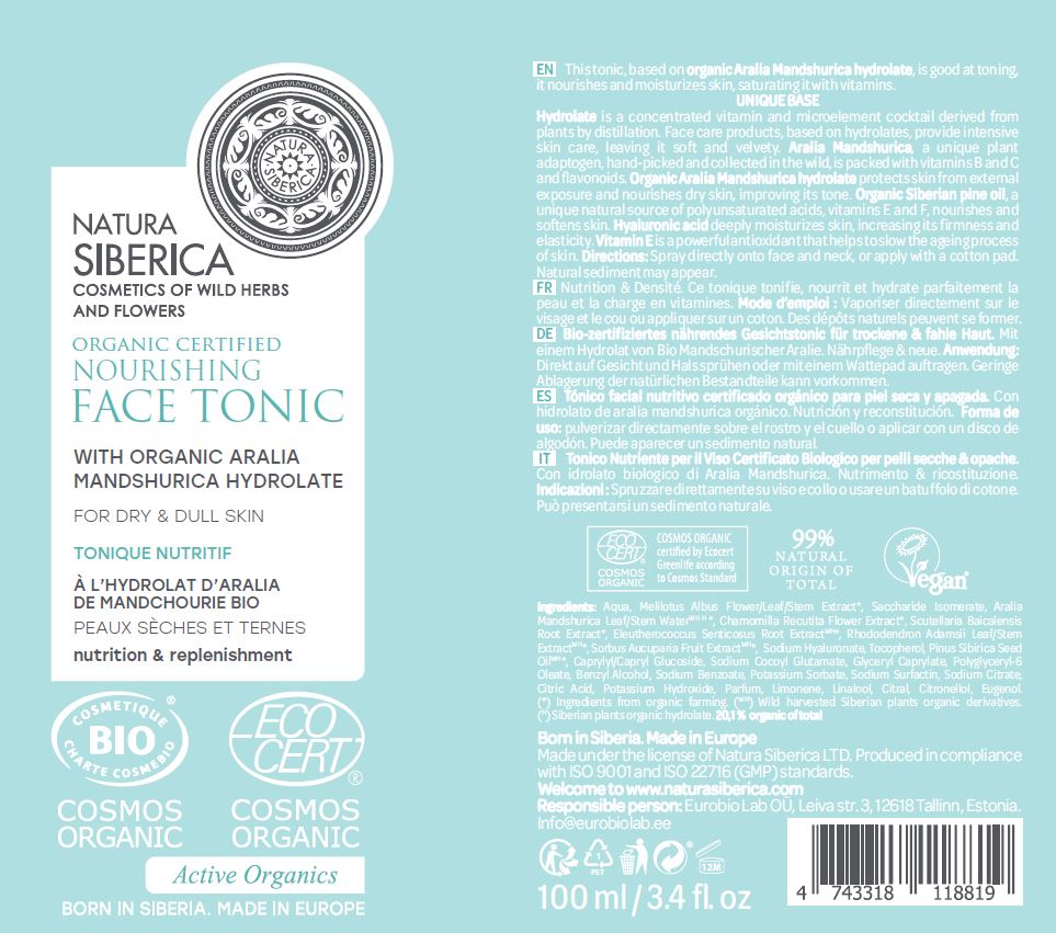 INCI: Aqua, Melilotus Albus Flower/Leaf/Stem Extract*, Saccharide Isomerate, Aralia Mandshurica Leaf/Stem WaterWH H *, Chamomilla Recutita Flower Extract*, Scutellaria Baicalensis Root Extract*, Eleutherococcus Senticosus Root ExtractWH*, Rhododendron Adamsii Leaf/Stem ExtractWH*, Sorbus Aucuparia Fruit ExtractWH*, Sodium Hyaluronate, Tocopherol, Pinus Sibirica Seed OilWH*, Caprylyl/Capryl Glucoside, Sodium Cocoyl Glutamate, Glyceryl Caprylate, Polyglyceryl-6 Oleate, Benzyl Alcohol, Sodium Benzoate, Potassium Sorbate, Sodium Surfactin, Sodium Citrate, Citric Acid, Potassium Hydroxide, Parfum, Limonene, Linalool, Citral, Citronellol, Eugenol.